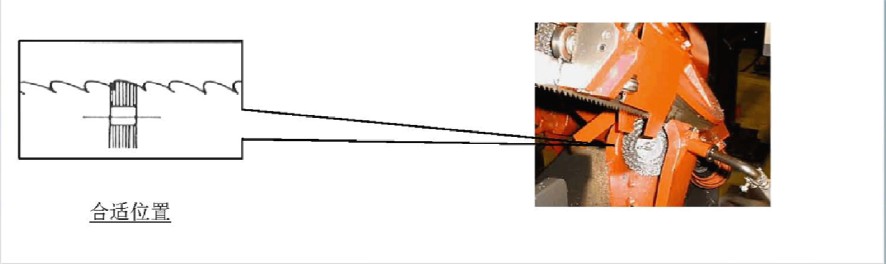通常我们会用高压冷却液对附着在锯条齿部的铁屑进行清理,但是这并不能达到完全清除的效果。正确使用钢丝轮刷,能有效清除残余的铁屑,减少锯条的崩齿等问题,保证锯条的正常使用寿命。另外值得注意的是,应经常检查钢丝刷与锯齿的接触部位并及时调整,下图为锯条的正确安装位置: